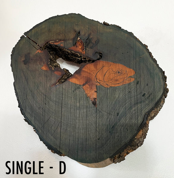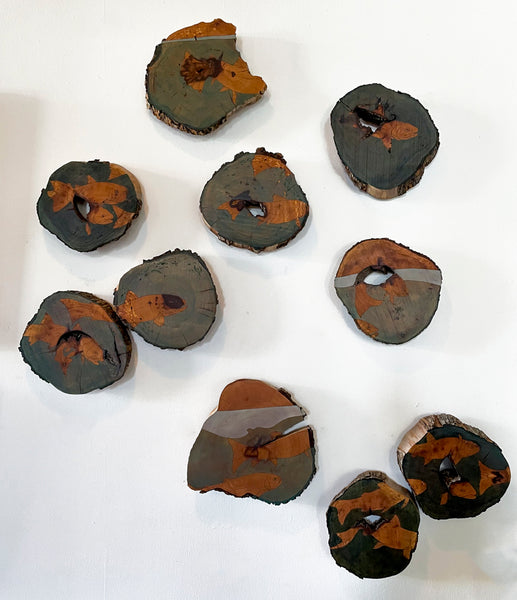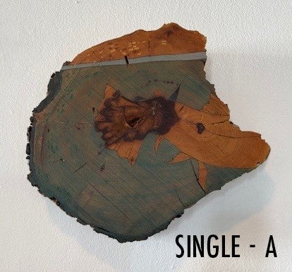 Burn and oil paint on timber slab
